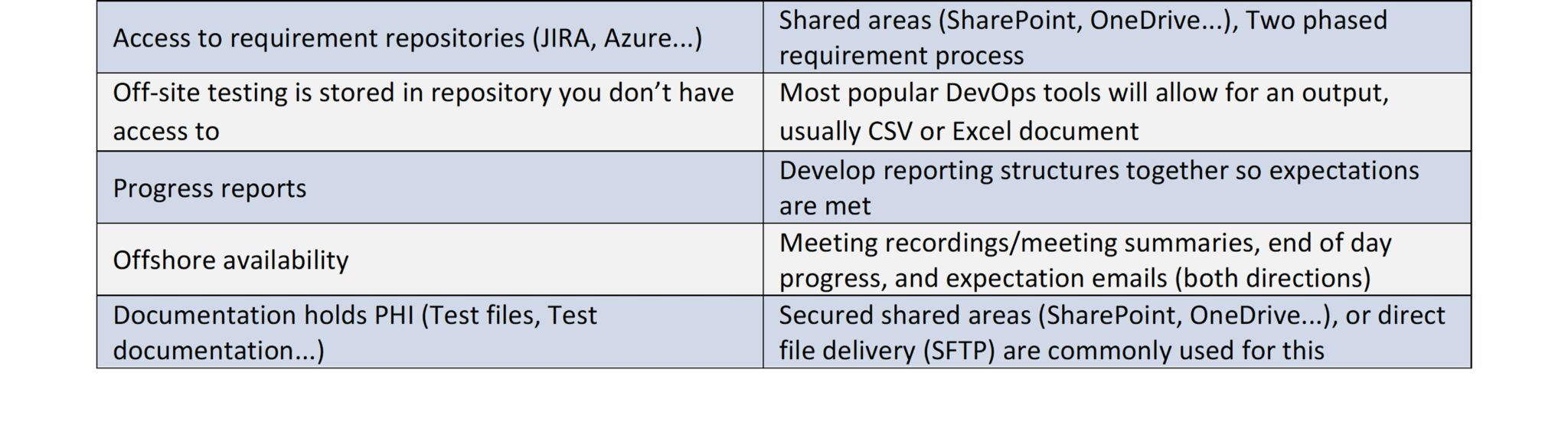Sometimes you are unable to perform your own software development and will need to work with either a third-party development group, or maybe even the software owners. When working with off-site vendors, you can run into challenges merging your quality assurance (QA) processes with theirs. This can surface in a handful of ways: access to each other’s requirements repository, visibility to progress, and access to testing documentation to name a few. So how can you implement a sufficient QA process when collaborating with another company?